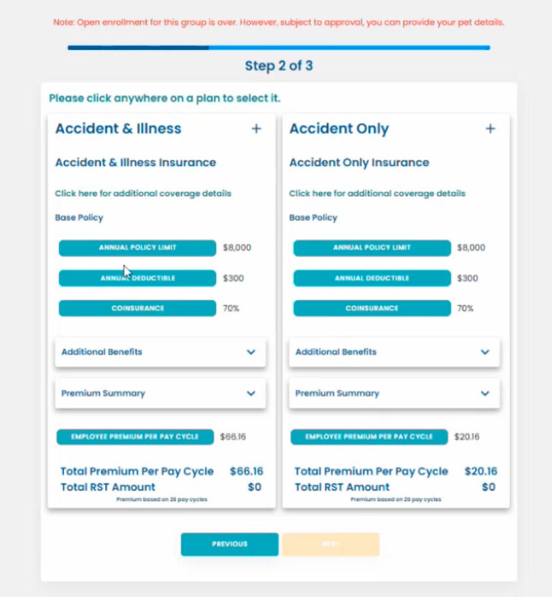 In addition to the primary enrollment experience, we also designed an in-app registration flow for a second employee-benefit segment—users who needed to add pet demographics to activate their insurance.